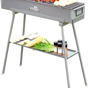 WILLBBQ Charcoal Grills Commercial Quality Portable Multiple Size Hibachi BBQ Lamb Skewer Folded Camping Barbecue Grill for Garden Backyard Party Picnic Travel Outdoor Cooking Use(31.6×7.1×5.1 inch)