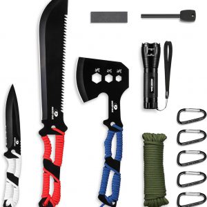 Mossy Oak Hatchet and Machete Knife Set with Sheath, One-Piece Axe & Hunting Knives with Paracord Handle, Zoomable Flashlight, Many Other Tools, Ideal Gift for Men Who Likes Hunting Outdoor Adventure