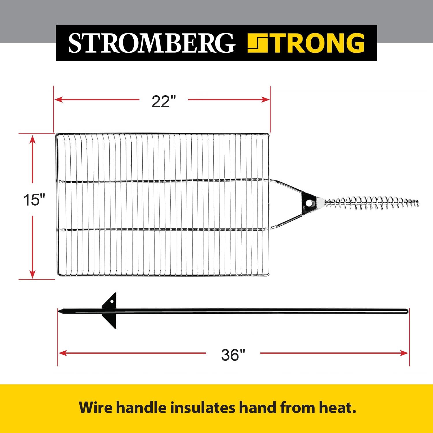 - WELL-DESIGNED OPEN FIRE GRILL: Stromberg Carlson Stake & Grill is designed for the specific needs of campers and outdoor adventurers. Made to be used for open pit or campfire cooking, our grate has up-turned edges so that hotdogs and other food will not easily roll or fall off grill. It also has a wire handle as an insulation from heat. We included a nylon bag to contain the mess; simply carry it wherever your adventure takes you.