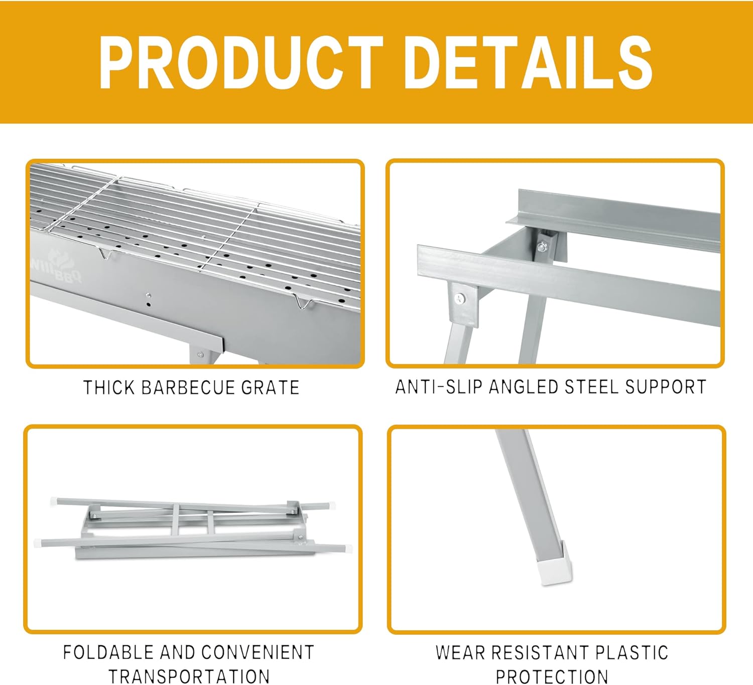 - Wide Application:The charcoal grills are perfect for any Skewers, Shish Kebab, Lamb Kebab, Shashlik, Japanese yakitori grill, Malaysian Satay, Thai Satay,Chinese Lamb Skewer and all other steaks, fish and vegetables, etc. Suitable for outdoor smoked cooking, picnics, tailgating, camping grill or on the patio,backyard, garden, traveling, park, beach.