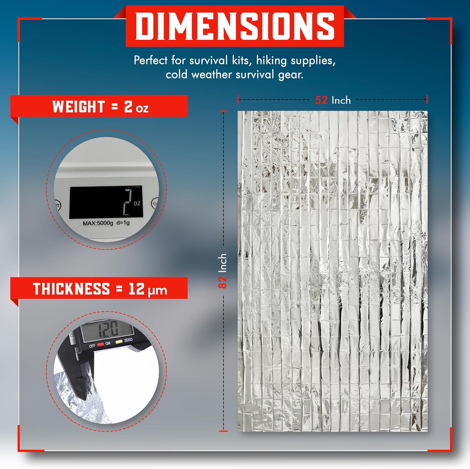 - Compact & Lightweight Design: Each survival emergency blanket measures 82″ x 52″ when unfolded yet folds down to a compact size, making it easy to store in bug-out bags, backpacks, cars, emergency kits, survival kits, or apocalypse gear without adding bulk