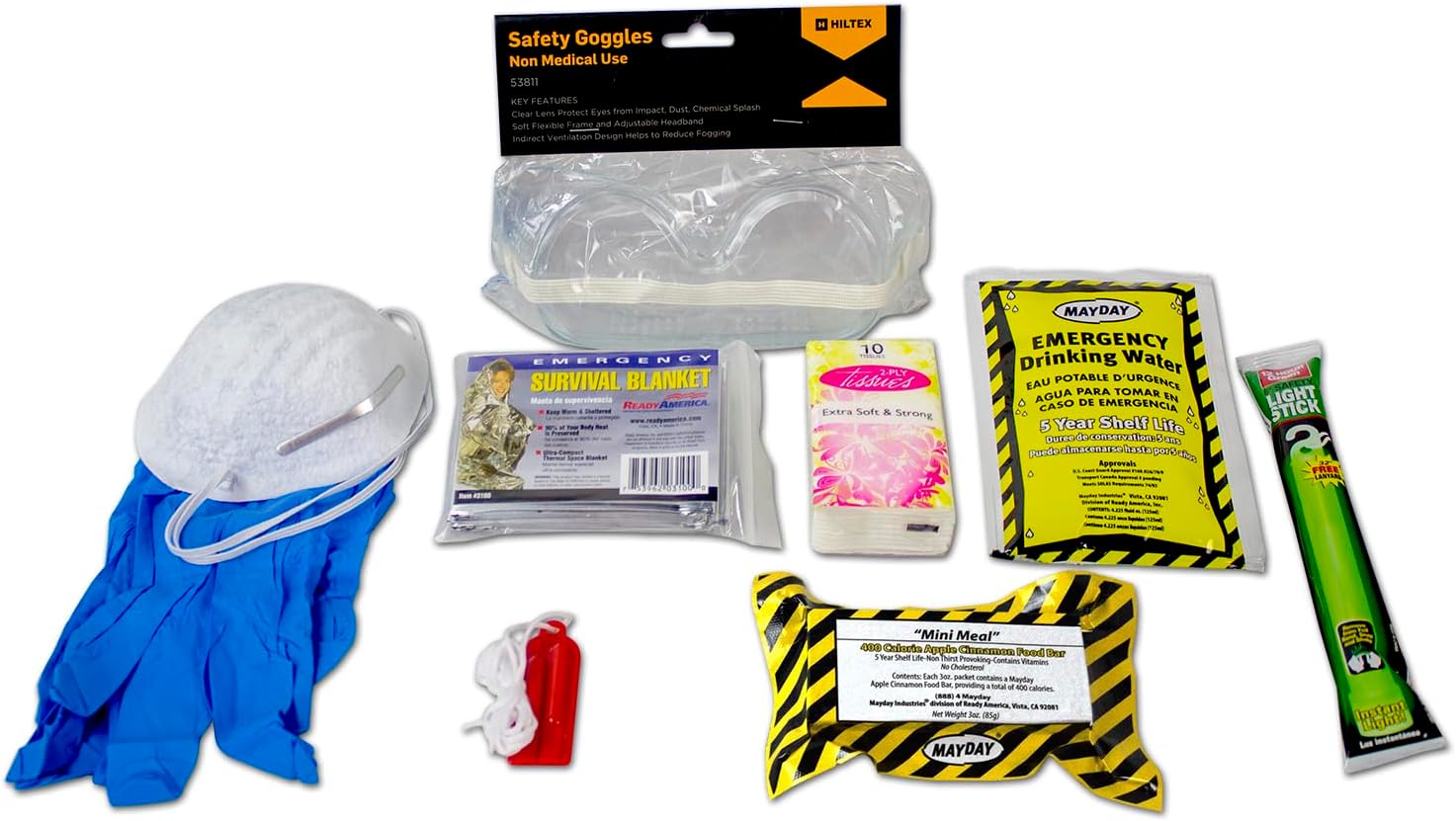 - The survival blanket (52 inches x 84 inches) retains 90% of body heat and can double as a rain shelter.